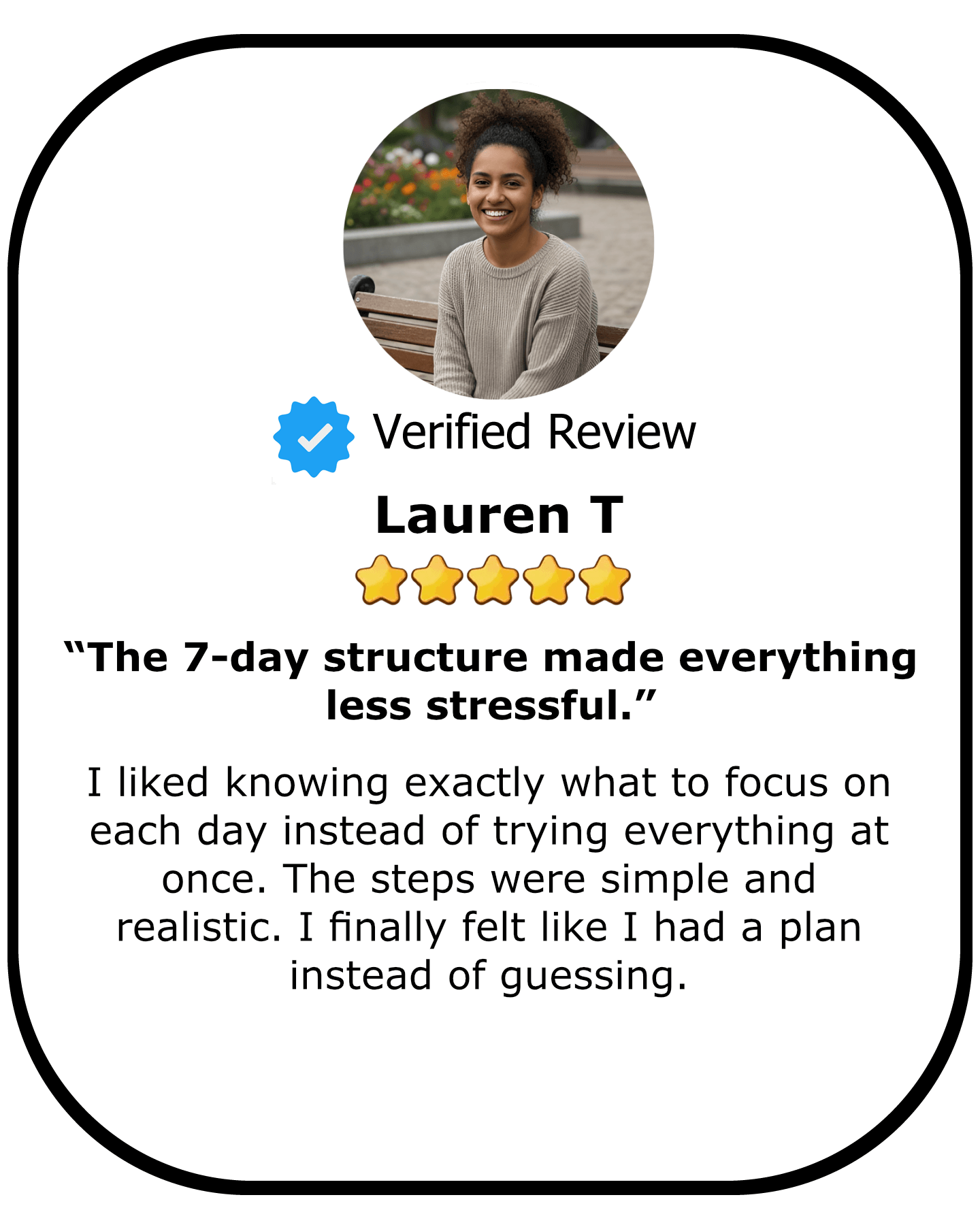 💙 Gives you a simple 7-day plan with clear steps, so you know exactly what to do at each meal.
